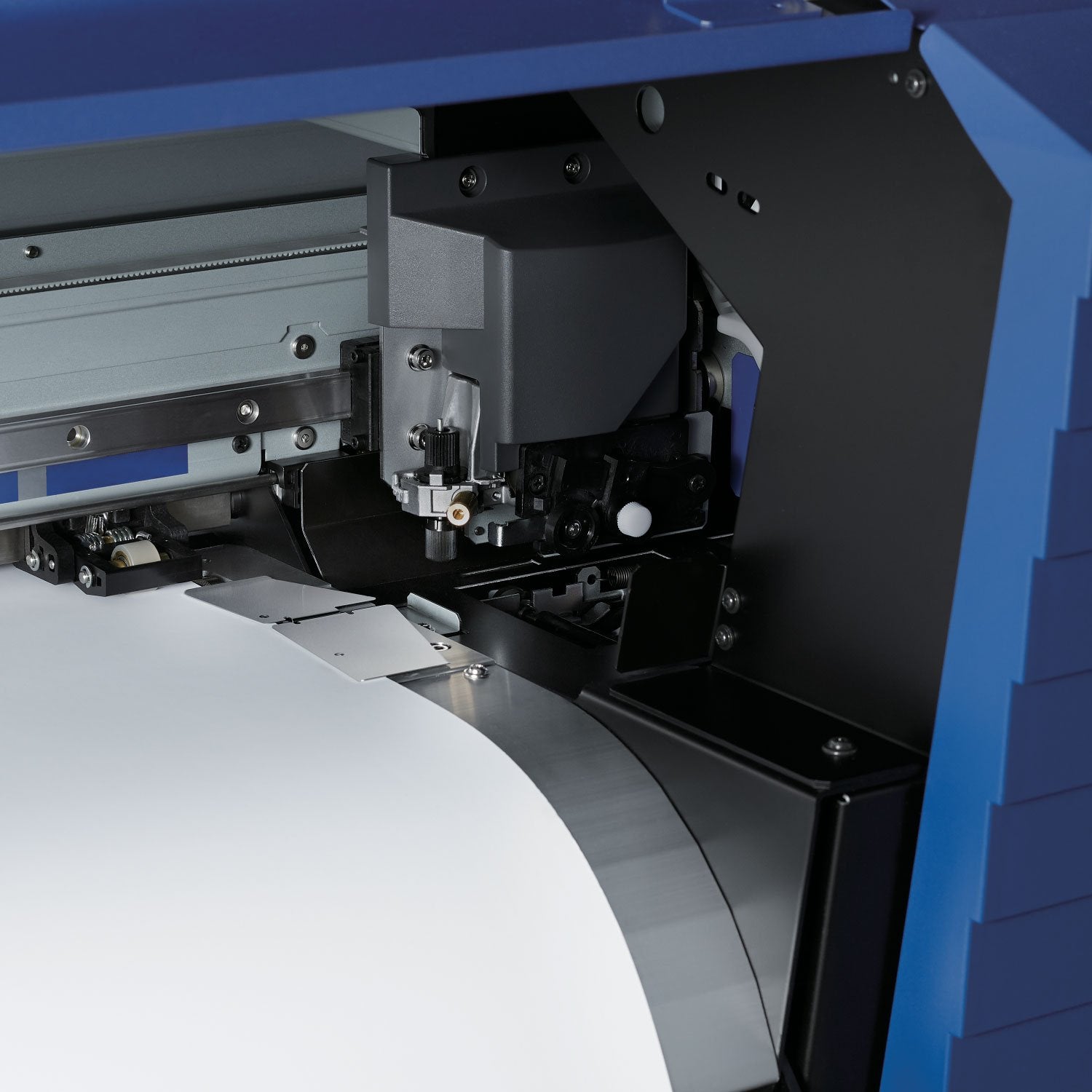 Pour l'instant, imaginez un grand rouleau d'autocollants en plastique. Comme indiqué plus haut, ce rouleau est spécialement enduit pour recevoir les encres. Et c'est ce revêtement qui rend possible l'impression à très haute résolution.